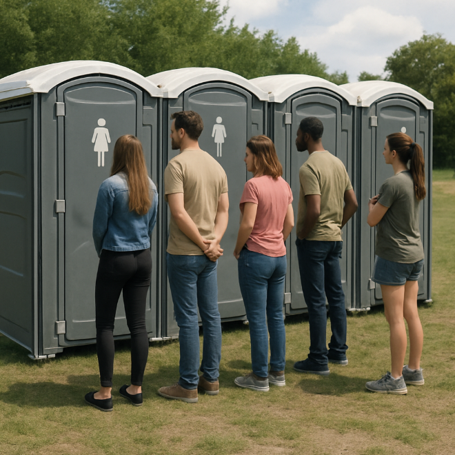 The challenge, however, is that many outdoor or private venues lack adequate restroom facilities for a large wedding party.